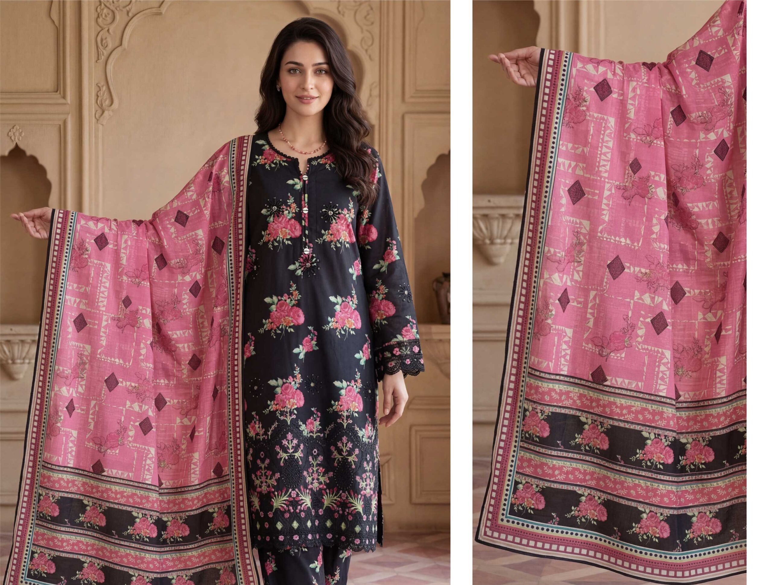 Introducing the Mahay Embroidered Lawn Collection, a beautifully crafted 3-piece outfit where traditional elegance meets modern design. Perfect for festive occasions and formal gatherings, this collection offers a refined look with premium comfort.